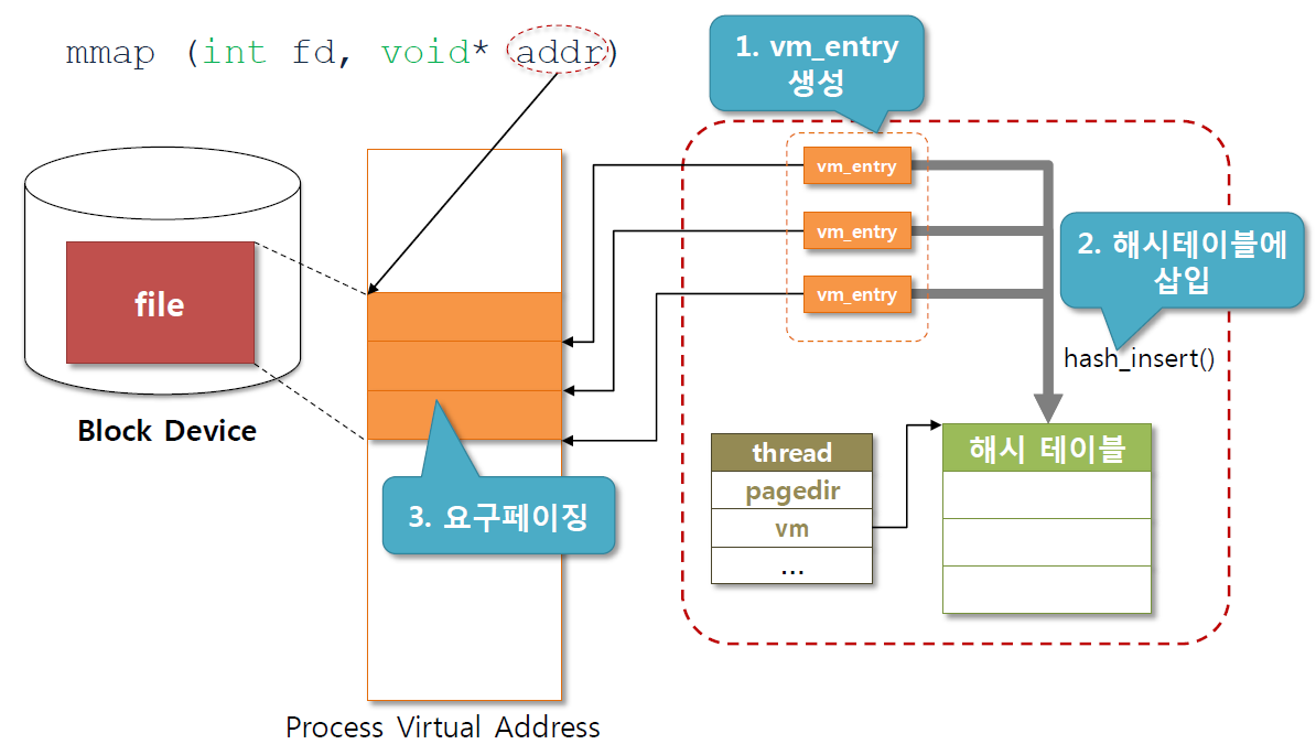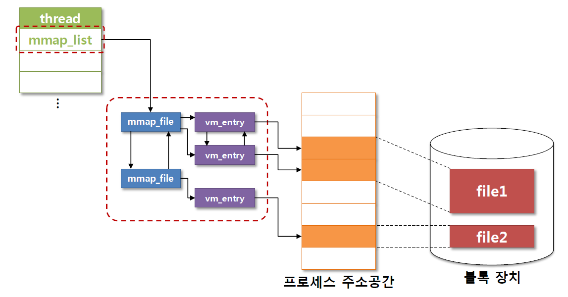 이전 파트에서는 anonymous page에 대해서 공부하고 구현했다. Memory maaped file 파트에서는 메모리가 매핑된 페이지에 대해 구현한다.