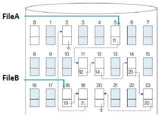 하지만 이런 방식은 파일의 모든 블록을 읽게 되어서 속도가 느리고 직접 접근에도 비효율적이다. 또한 포인터 저장을 위한 공간도 필요하기 때문에 공간 활용에 비효율적이다.