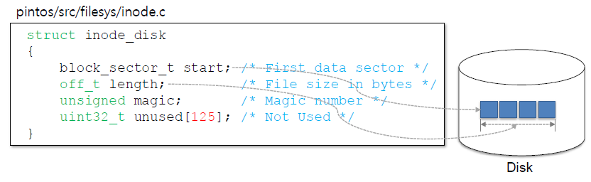 disk_sector_t data_start; // 파일을 저장할 수 있는 섹터를 저장